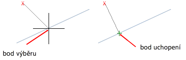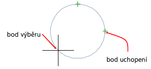 Uchopí bod objektu, definiční bod kóty nebo počátek kótovacího textu.