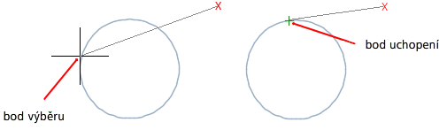 Pomocí nastavení uchopení objektu můžete určit bod v přesném umístění na objektu. Možnosti lze procházet stisknutím klávesy TAB.
