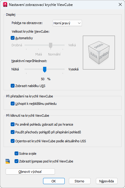 Práce s možnostmi zobrazení nástroje ViewCube
