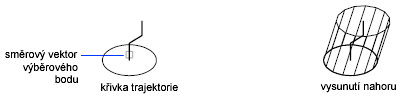 Program pracuje pouze s prvním a posledním bodem na křivce, přičemž ignoruje mezilehlé vrcholy. Směrový vektor indikuje směr a délku tvaru, který se má vysunout. Konec, vybraný na křivce nebo úsečce, určuje směr vysunutí. Původní křivka trajektorie je kreslena silnou čárou, abyste mohli lépe rozpoznat směrový vektor vytvoření trajekční plochy.