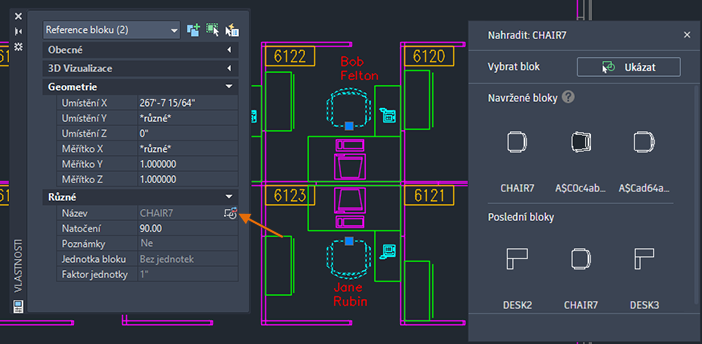Poznámka: Nahrazení bloku není dostupné v aplikaci AutoCAD LT.