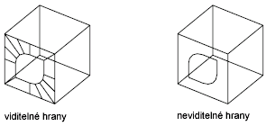 Specifikace neviditelnosti musí předcházet určení režimu snímání objektu, filtry XYZ i vstup souřadnice pro danou hranu. Můžete přitom vytvořit takovou 3D plochu, ve které jsou všechny hrany neviditelné. Taková plocha je skrytá; neobjevuje se v zobrazeních drátového modelu, ale v čárových výkresech může skrývat materiál. 3D plochy jsou viditelné ve stínovaném rendrování.