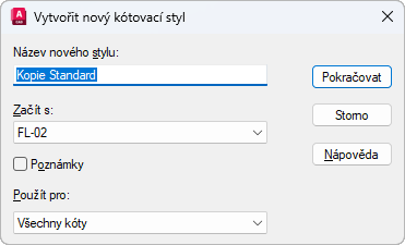 Zobrazí dialog Nový kótovací styl, kde můžete definovat vlastnosti nového kótovacího stylu.