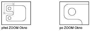 Slouží k posunu nebo přiblížení pomocí obdélníkového okna pohledu. Okno pohledu představuje pohled, který můžete zmenšit nebo zvětšit a pohybovat s ním po výkresu. Umístění a určení velikosti okna pohledu vykoná odpovídající posunutí či přiblížení pohledu tak, aby byl výřez vyplněn pohledem uvnitř okna pohledu. Není k dispozici v perspektivním promítání.