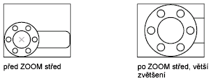 Zvětšení pohledu můžete změnit oddálením a přiblížením, podobně jako oddálení a přiblížení u fotoaparátu. Příkaz ZOOM nezmění absolutní velikosti objektů ve výkresu. Změní pouze zvětšení pohledu.
