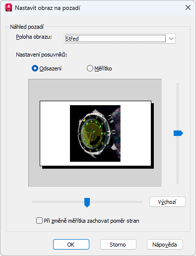 Udává měřítko obrázku (není dostupné, je-li poloha obrázku nastavena na Protažení).