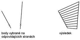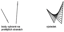 Příkaz PŘÍPL slouží k vytvoření sítě, která představuje přímkový povrch mezi dvěma úsečkami nebo křivkami.
