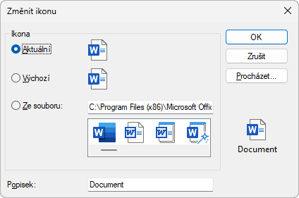 Zobrazí dialog Procházet (standardní dialog pro výběr souboru), ve kterém můžete vybrat ikonu ze souboru.