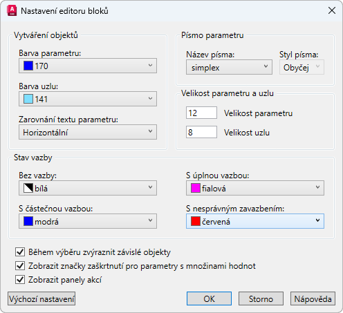 Nastavuje písmo použité pro parametry a akce v editoru bloků.
