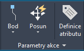 Akce definují způsob, jakým se přesouvá nebo mění geometrie reference dynamického bloku při manipulaci s uživatelskými vlastnostmi reference bloku ve výkresu. S akcemi se sdružují parametry. Příkaz NÁSTROJAKCEBLOKU používaný v editoru bloku je dostupný na pásu karet nebo nástrojích akce na kartě Akce u palet vytváření bloků.