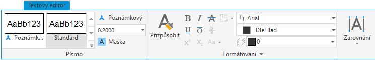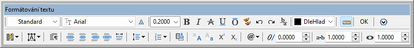 Poznámka: Systémová proměnná MTEXTTOOLBAR řídí zobrazení panelu nástrojů Formátování textu.