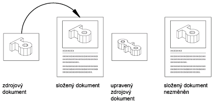 Při propojování výkresu je nutné zachovat přístup k zdrojové aplikaci a propojenému dokumentu. Jestliže přejmenujete nebo přesunete jeden z nich, bude nutné propojení znovu zavést.