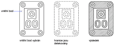 Uzavřené oblasti nebo textové objekty uvnitř hranic šrafování jsou považovány za ostrůvky.