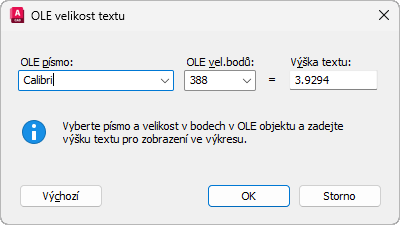 Měřítko OLE objektu je změněno automaticky a bude přizpůsobeno velikosti textu.