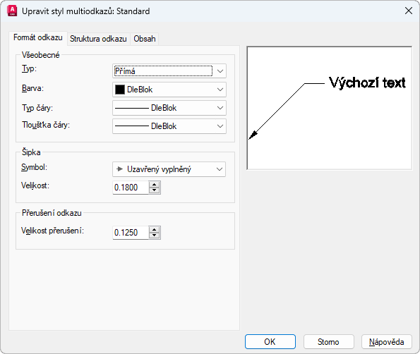 Karta Obsah (dialog Upravit styl multiodkazu)