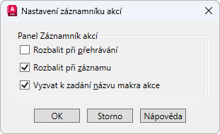 Přizpůsobuje použitá nastavení nástroje Záznamník akcí.