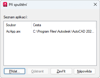 Přidává a odebírá soubory aplikací ze skupiny Při spuštění. Jedná se o aplikace, které jsou načteny při každém spuštění produktu.
