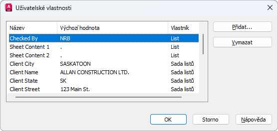 SADALISTŮ (příkaz) Hledat: Klikněte pravým tlačítkem na název sady > Vlastnosti > Upravit uživatelské vlastnosti