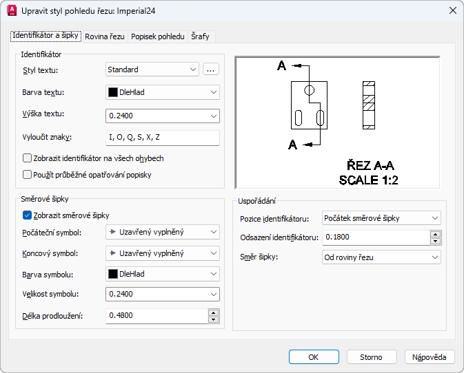 Karta Identifikátor a šipky (Správce stylů řezu)