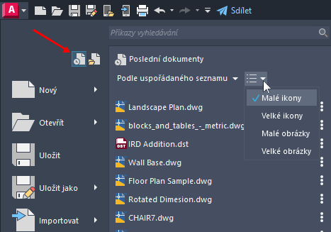 Jak upravit zobrazení posledních použitých dokumentů.
