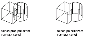 Zkombinuje dvě nebo více 3D těles, povrchů nebo 2D oblastí do jediného složeného 3D tělesa, povrchu nebo oblasti.