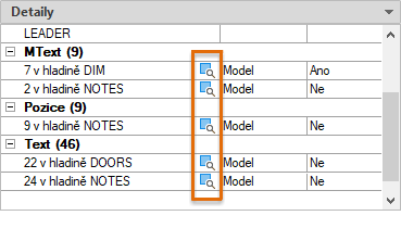 Zobrazí náhled objektů, které není možné čistit, a najde tyto objekty ve výkresu.