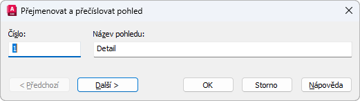 Dialog Přejmenovat a přečíslovat pohled