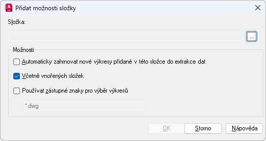 Při procesu extrakce dat zahrne výkresy ve složkách vnořených do vybraných složek.