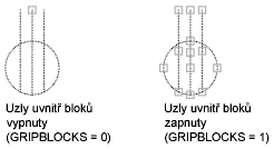Řídí zobrazení uzlů v blocích. (systémová proměnná GRIPBLOCK)