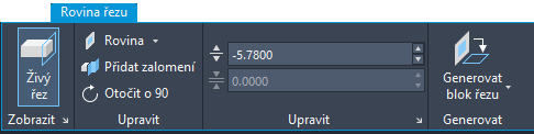 Při výběru čáry řezu se na pásu karet zobrazí kontextová karta Rovina řezu.