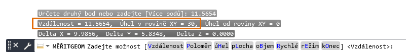 Měření se zobrazí v příkazovém okně. V případě potřeby rozbalte příkazové okno stisknutím klávesy F2.
