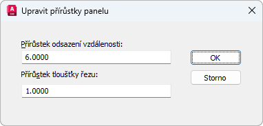 Pokud pro možnost Přírůstek vzdálenosti odsazení nastavíte například hodnotu 6.0000, jedním kliknutím na šipku nahoru v ovládacím prvku Odsazení řezu zvýšíte jeho hodnotu o 6.0000 bodů.