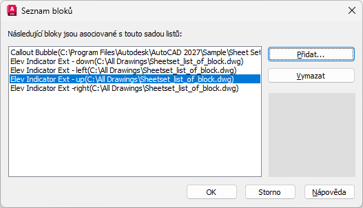 Zobrazuje seznam bloků dostupných v aktuální sadě listů.