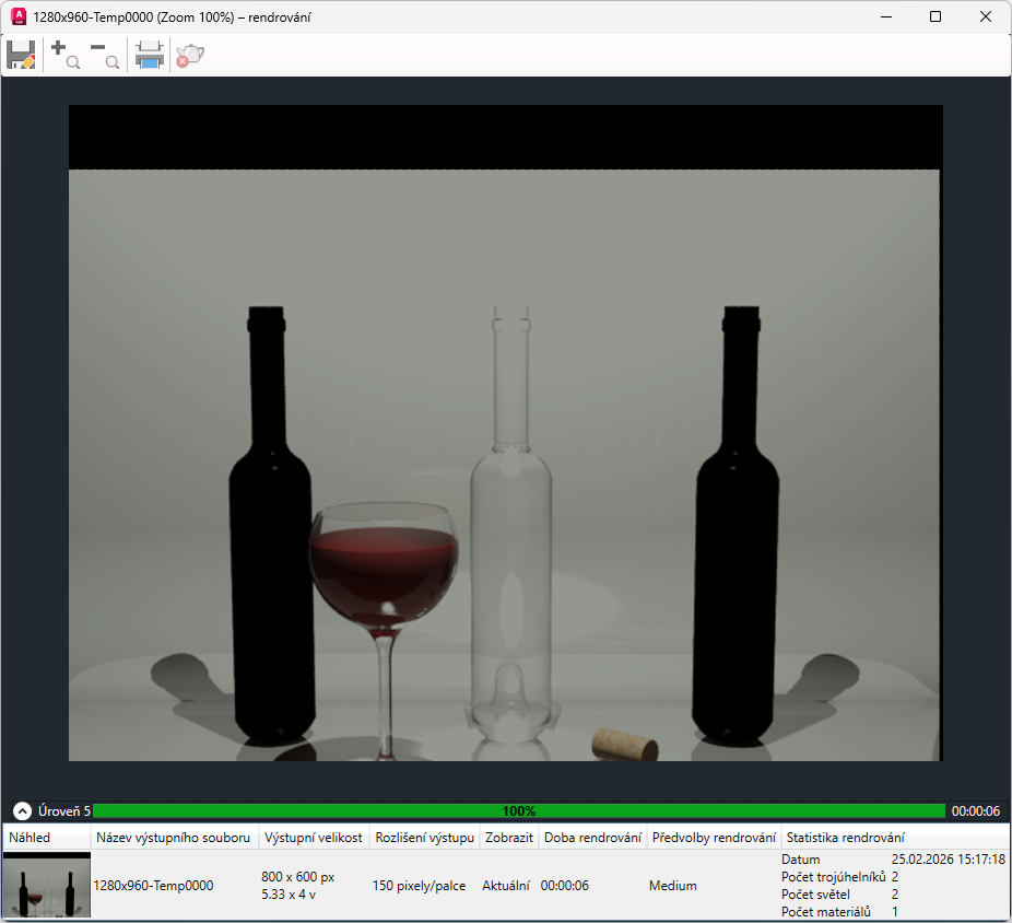 • Náhled. Miniaturní náhled dokončeného rendrovaného obrázku.
