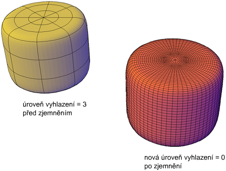 Kromě zvýšení počtu ploch slouží zjemnění objektu sítě k nastavení jeho úrovně vyhlazení zpět na základnu. Objekt se tedy může jevit jako vyhlazený, i když je jeho úroveň vyhlazení nastavena na hodnotu 0 (nula).