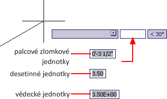 Můžete si vybrat z několika běžných konvencí, které představují formát a přesnost lineárních vzdáleností a souřadnic zobrazených na paletě Vlastnosti, v dynamickém zadání, na stavovém řádku nebo jinde.