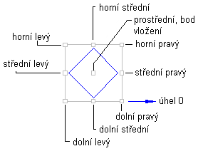 Určuje místo na komponentě bloku, které je připojeno k bodu ukotvení. Připojovací body jsou vypočteny na základě obdélníku, který obklopuje blok, jehož velikost je určena zahrnutím hodnoty mezery zadané v kategorii Hranice. V následujícím obrázku jsou znázorněny připojovací body bloku:
