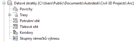 Výchozí pracovní složka projektů datových zkratek je C:\Users\Public\Documents\Autodesk\Civil 3D Projects. Výchozí pracovní složka se používá také pro projekty aplikace Autodesk Vault a pro místní projekty (nikoli projekty aplikace Vault) aplikace Survey.