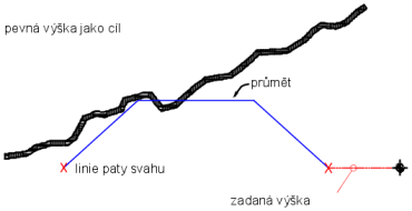 Výška: Určuje, že promítané linie zemního tělesa budou prodlouženy z návrhové linie, dokud nedosáhnou určené výšky. Zadejte kladné nebo záporné číslo v poli Výška.