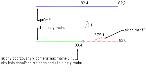 Vzdálenost jako cíl svahování (zobrazení příčného řezu)