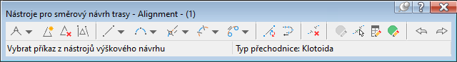 Tento panel nástrojů slouží k nakreslení jednoduchých úseček tečna-tečna, vytvoření geometrie trasy založené na vazbách a úpravě trasy.