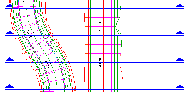 K získání přesnějšího výpočtu kubatury v této situaci vytvořte stopy příčných řezů podél základny pro oba koridory.