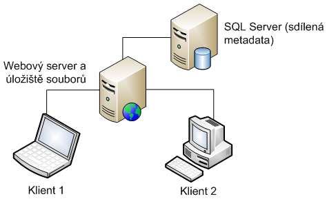Většině týmů se doporučuje konfigurace na jednom místě. Server aplikace Vault je nainstalován v jednom počítači a klientská komponenta aplikace Vault je nainstalována v každém počítači, který musí komunikovat s tímto serverem. Na serveru jsou uloženy všechny hlavní kopie datových souborů; klienti mají přístup k souborům uloženým na serveru. Pro nejlepší výkon je doporučeno použít k ukládání souborů a sdílení metadat vyhrazený server.