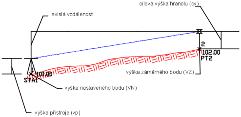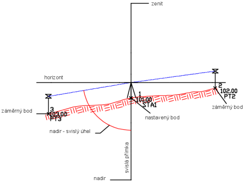 Staničení vrcholu výškového polygonu protisměrného oblouku