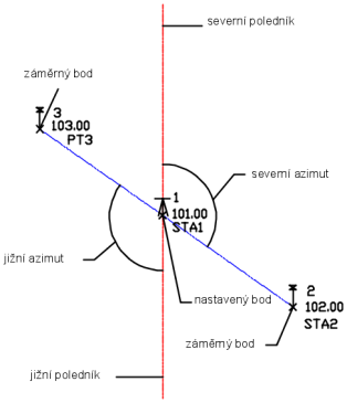 Azimut odvozený ze zaměření slunce a zaměření hvězd.