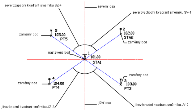 Bod, do něhož je zaměřen přístroj k měření nebo určení jeho výšky nebo vodorovné polohy.