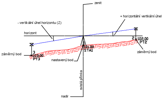 Jestliže upravíte smyčku polygonového pořadu nebo na zaměřená data použijete metodu nejmenších čtverců, převedou se vertikální úhly a vzdálenosti automaticky na horizontální úhly a vzdálenosti.