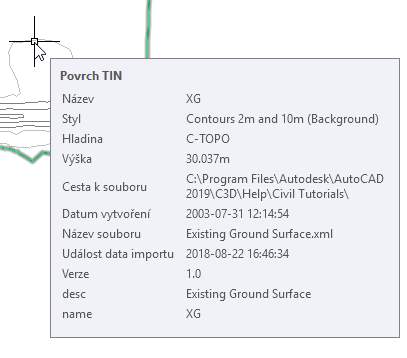 Tato data sad vlastností je možné zobrazit na paletě Vlastnosti aplikace AutoCAD a v místních nápovědách.