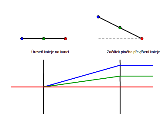 Následující obrázek znázorňuje způsob klopení vnější kolejnice jednokolejné železnice.