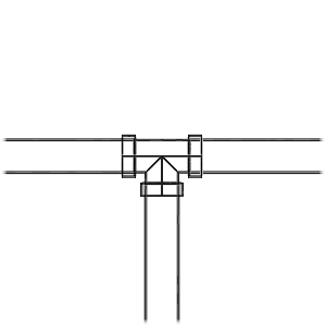 . Tento symbol označuje, že se nová potrubní trasa přichytí ke geometrii potrubí a k existující potrubní trase bude přidána vhodná rozbočka T, která tyto dvě trasy propojí. Pokud kliknutím ve výkresu, když je tento symbol zobrazen, vložíte součást, vytvoří se připojení.